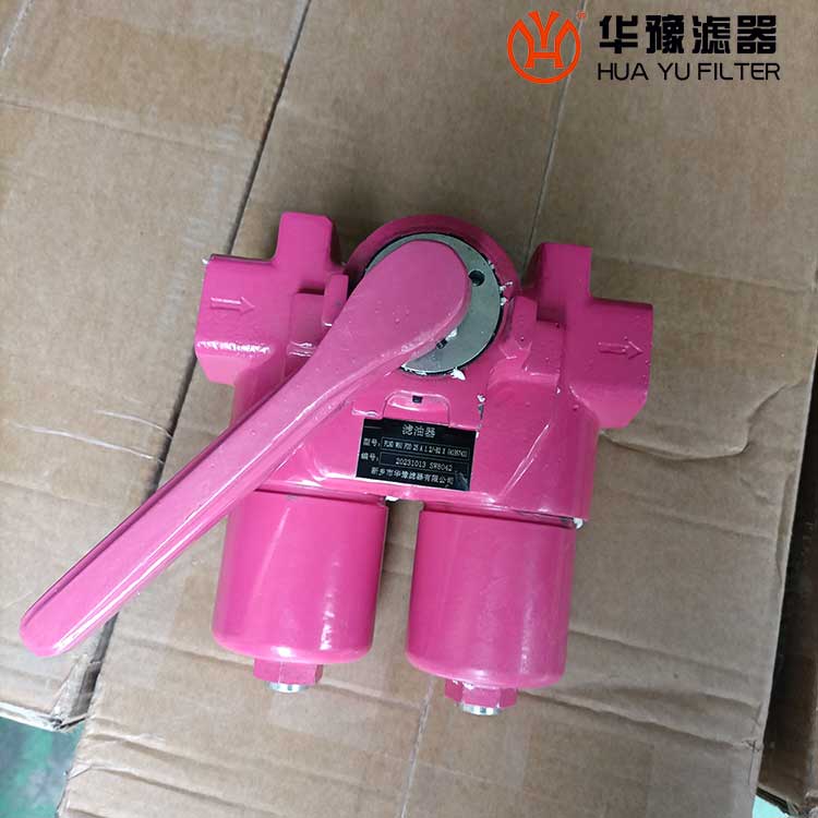 該過濾器是由兩只單筒過濾器、換向閥、旁通閥、發(fā)訊器、擴散器等組成。它被安裝在油箱的頂部,可在形同不停機的情況下更換濾芯,適用于連續(xù)工作的液壓系統(tǒng)回油精過濾,用來濾除液壓系統(tǒng)中諸元件磨損產(chǎn)生的金屬粉末以及密封件的橡膠雜質(zhì)等,使流回油箱的油液保持清潔,以利于系統(tǒng)中的油液循環(huán)使用。